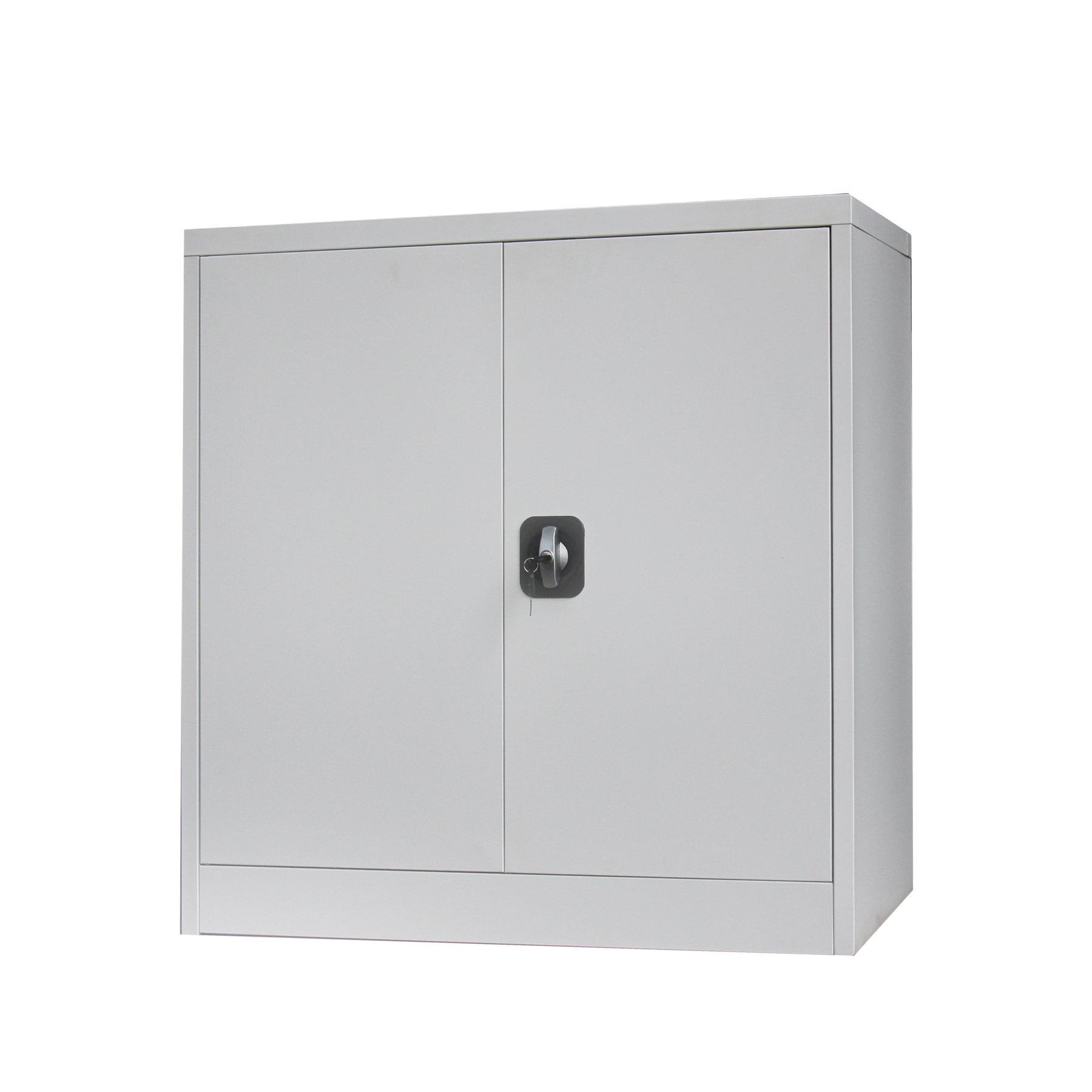 Метален шкаф с две метални врати със заключване. Шкафът има един рафт, които може да се регулира във височина.