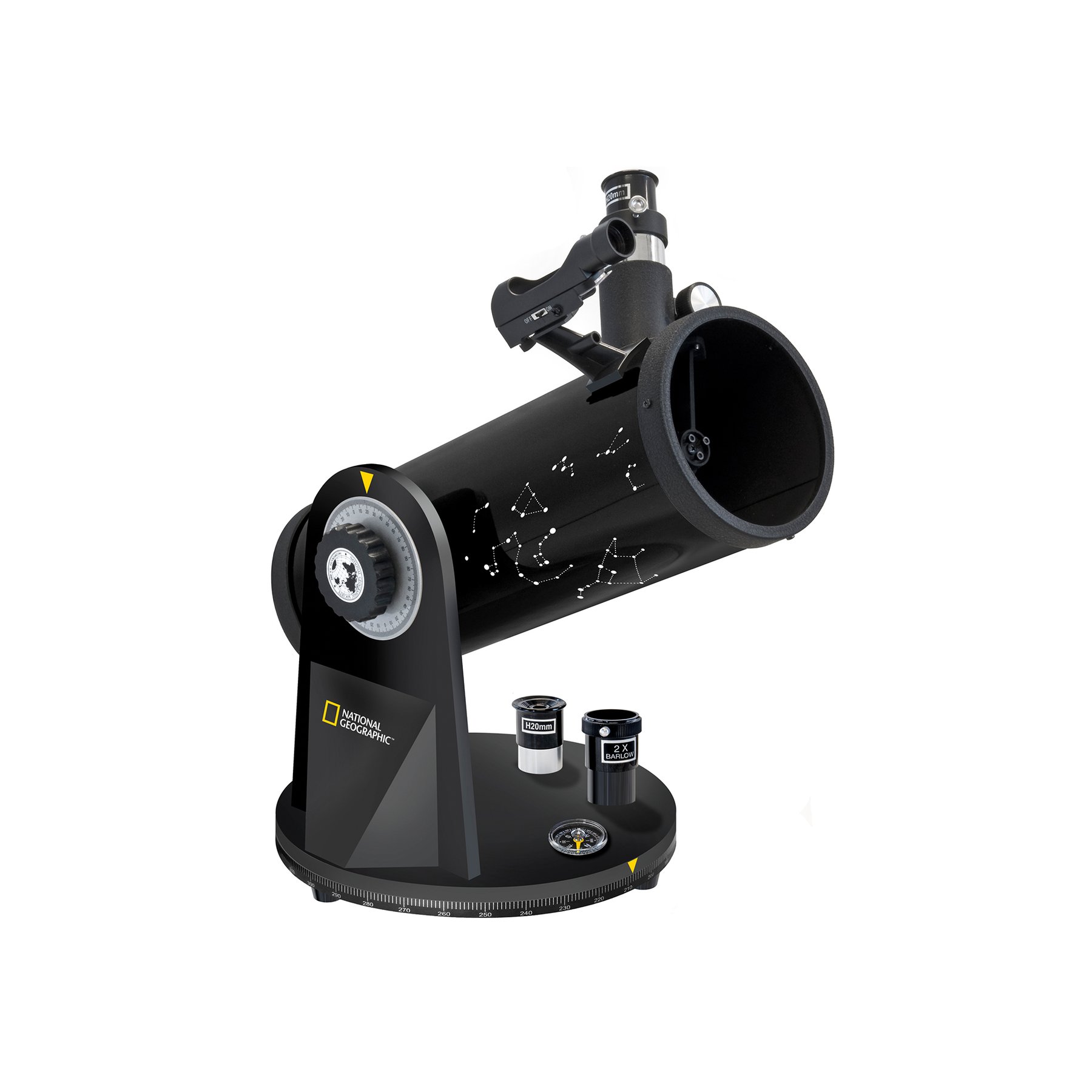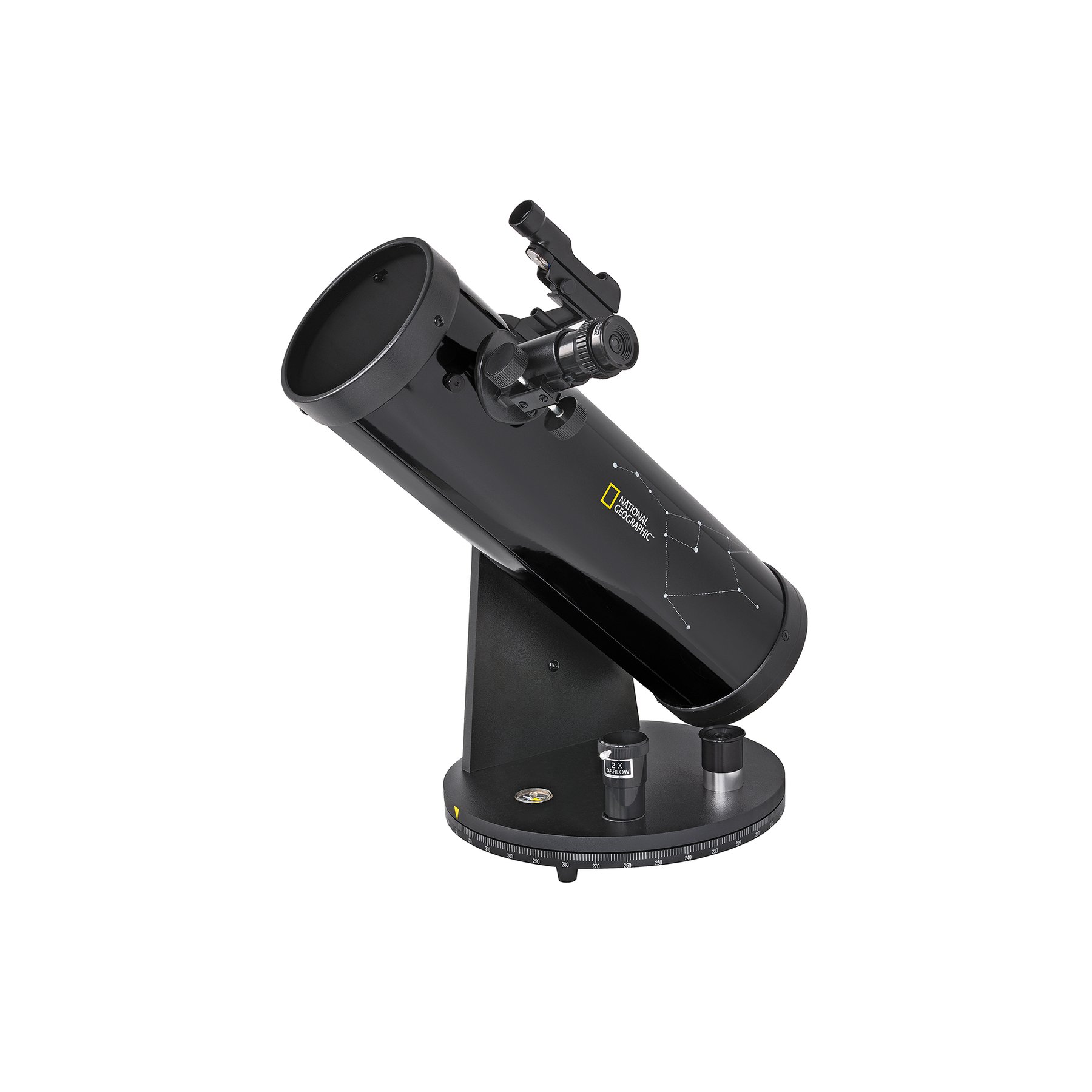 Със своята 114-милиметрова бленда, този телескоп събира три пъти повече светлина, отколкото 76-милиметров телескоп. По този начин се виждат по-бледи обекти и можете да наблюдавате повече детайли от Луната и планетите. Въпреки това телескопът е много компактен и се поставя бързо, без да се изисква сглобяване, така че може лесно да бъде транспортиран до любимото ви място за наблюдение на нощното небе. Използването е много интуитивно, без да се прави компромис със стабилността. Вградената поставка за аксесоари държи окулярите под ръка, а търсачката с червена точка улеснява намирането на обектите.