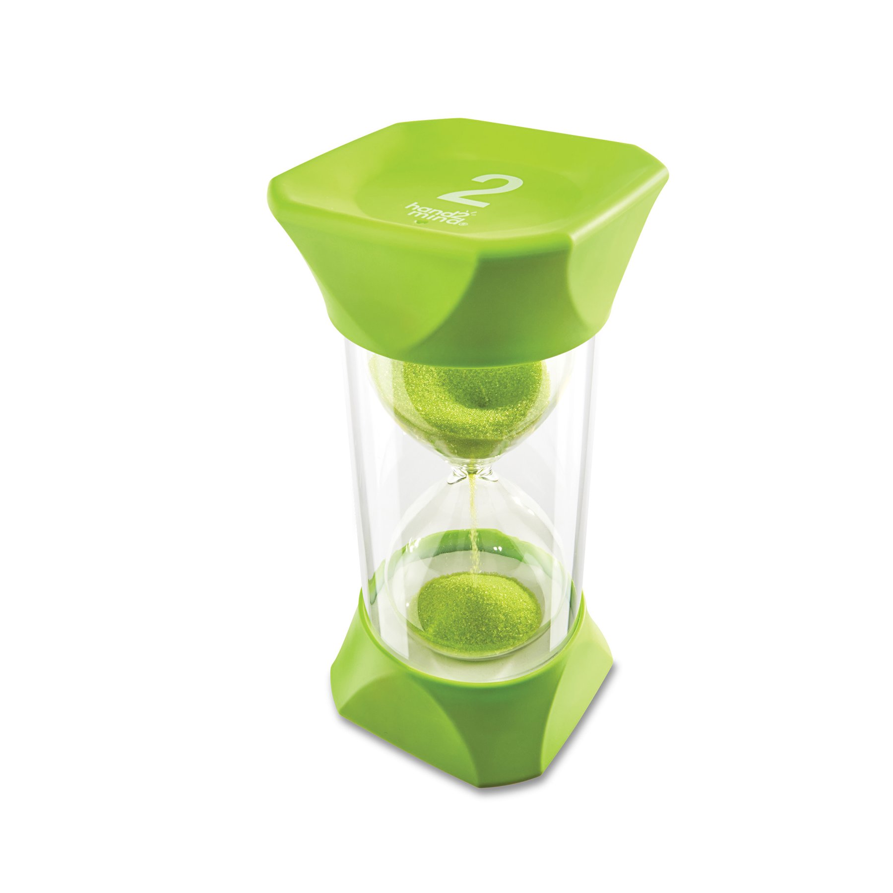 Цветният детски пясъчен часовник е идеален за визуално представяне на времето. Изключително здрав и устойчив на удари. В уголемен размер, подходящ за деца. Засича 2 минути. Цвят: зелен.
