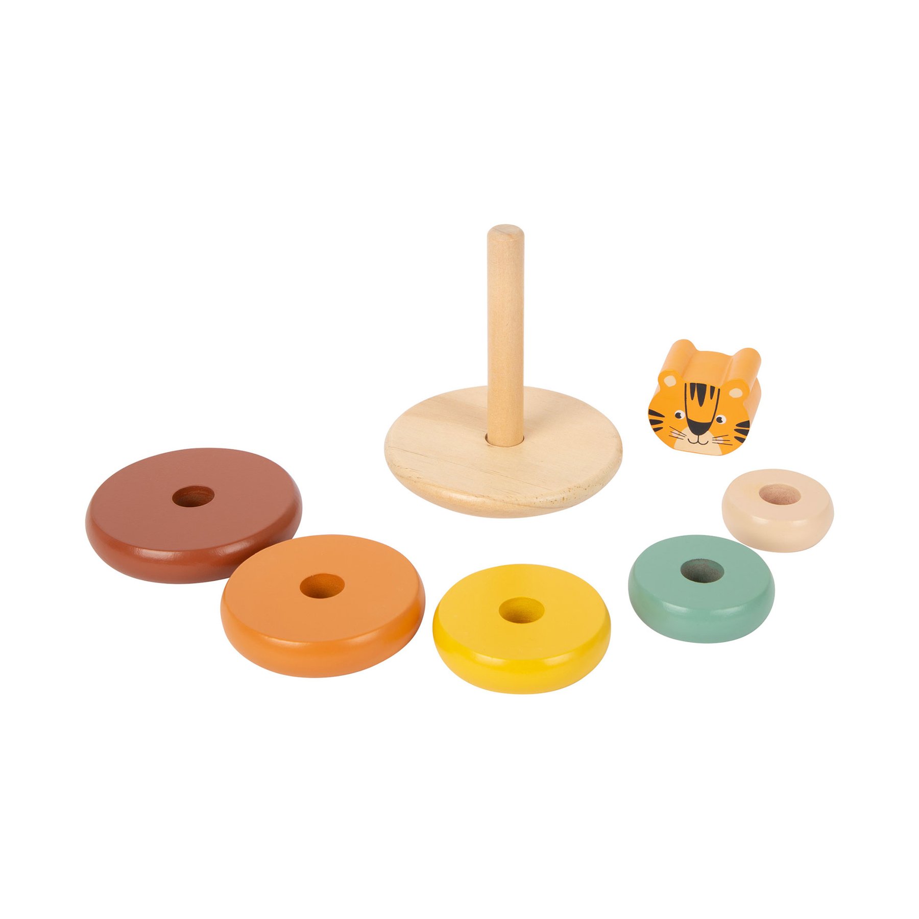 Кула за подреждане или пирамида? И двете! Симпатичният тигър се появява веднага след като децата подредят цветните дървени пръстени на тялото му едно върху друго в правилния ред. Играта с комплекта тренира координация на очите и разбирането на формите и размерите. Играчката е проектирана с модерни цветове и изработена от качествена дървесина, което гарантира дълготрайно забавление при игра. Размери: 9 х 9 х 13.5 cm. Всички продукти на марката Small Foot са изработени от 100% сертифицирана дървесина и безвредни бои за играчки, което ги прави изцяло безопасни за здравето на децата. За деца над 12-месечна възраст.