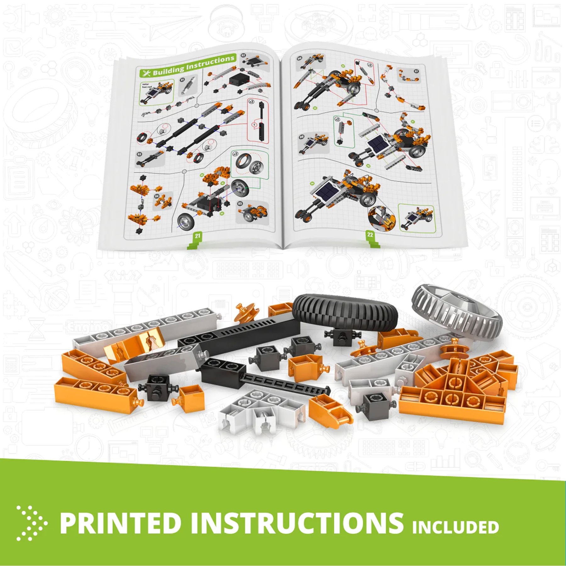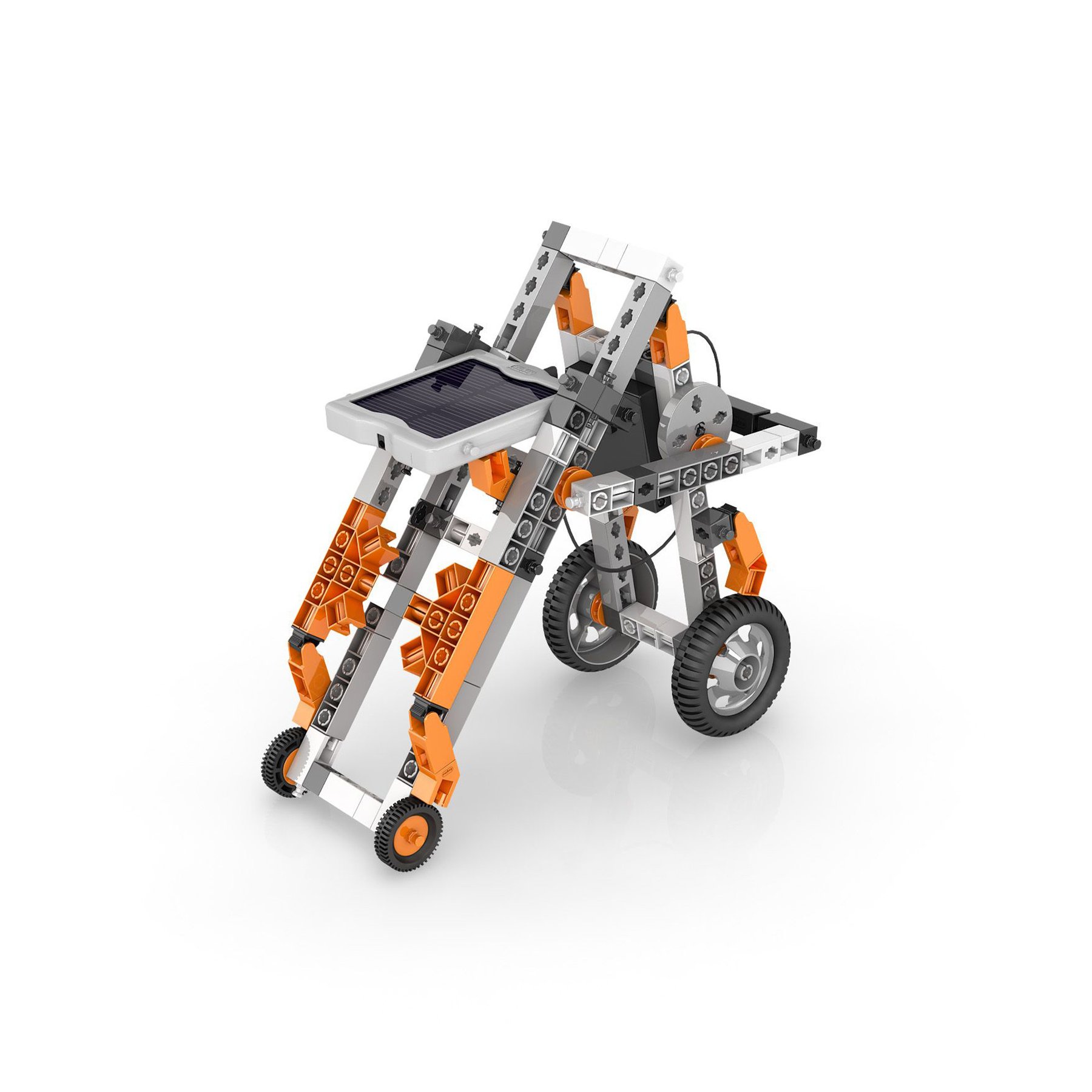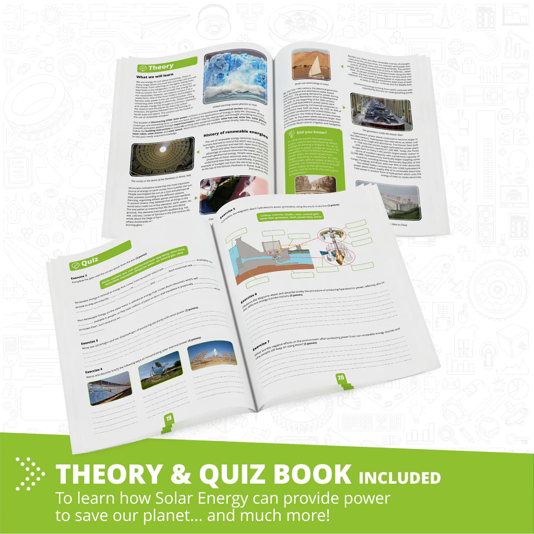 Този комплект включва един 3V соларен панел, който захранва електрически мотор, заедно с инструкции за 16 модела, захранвани със слънчева енергия като хеликоптер, вентилатор, самолет, робот и кран с лебедка. Можете да откриете лесни за следване инструкции за изграждане за всички модели онлайн или във включената книжка. Книжката предоставя подробни обяснения на прилаганите различни научни принципи и включва иновативни експериментални дейности за практическо обучение. Налична е и секция за тестове, за да предизвикате новопридобитите си знания!