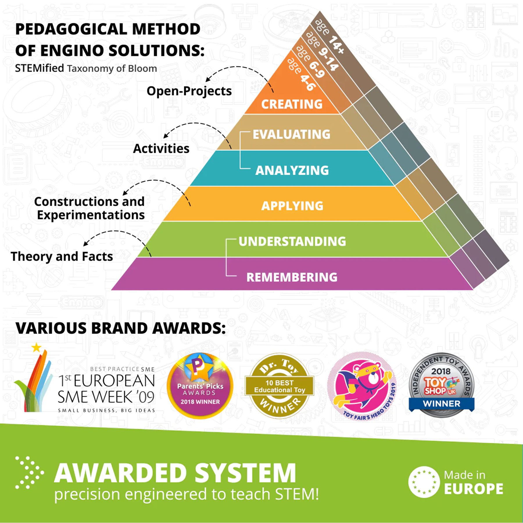 Научете всичко това и още много с Engino!Гаранционен срок: 3 години. Трябва да се регистрирате и активирате гаранцията от тук. Гаранцията покрива липсващи или повредени компоненти по време на покупката, компоненти, които не функционират както трябва, като сензори на контролери и т.н.Допълнителна информация за комплекта и инструкции за сглобяване ще намерите тук.