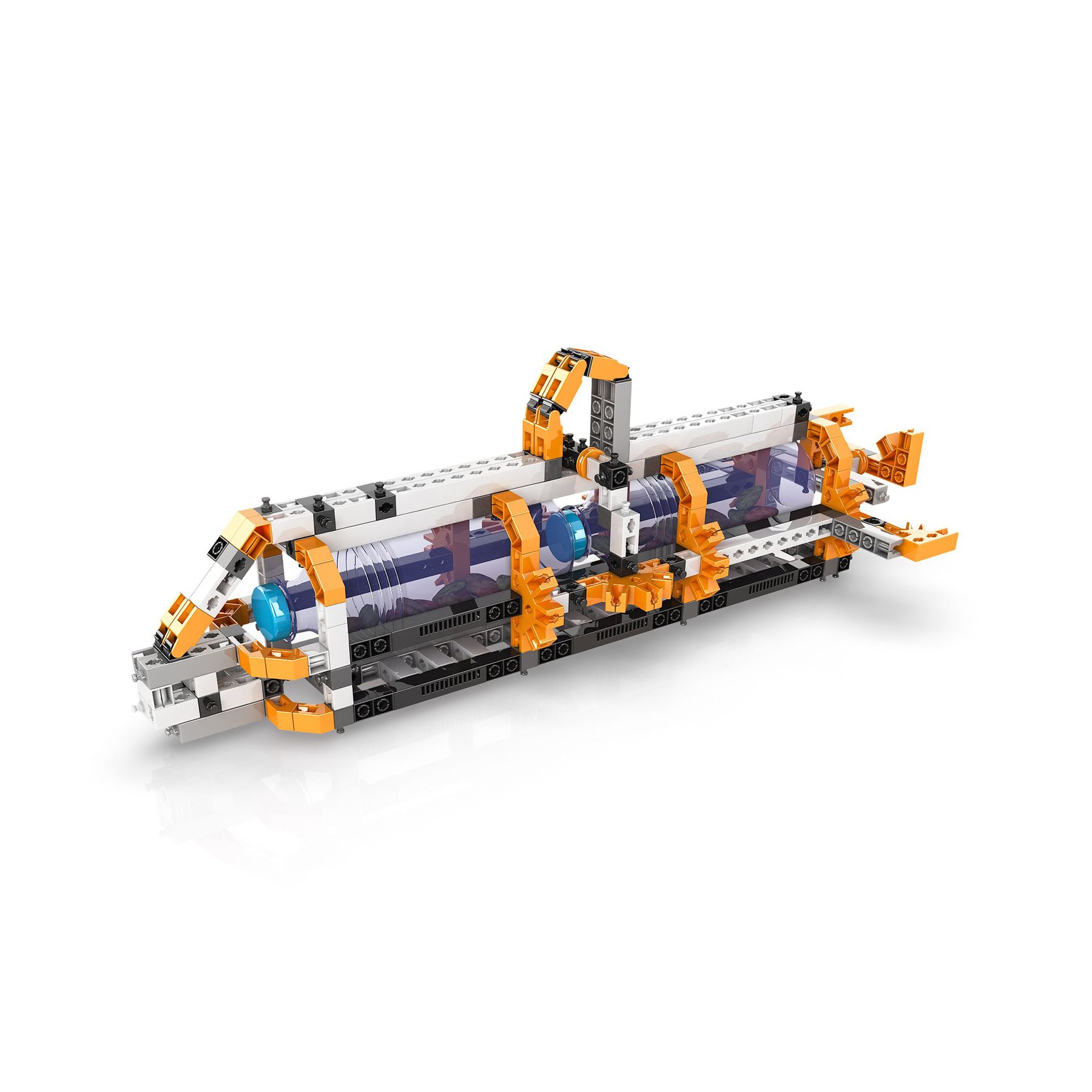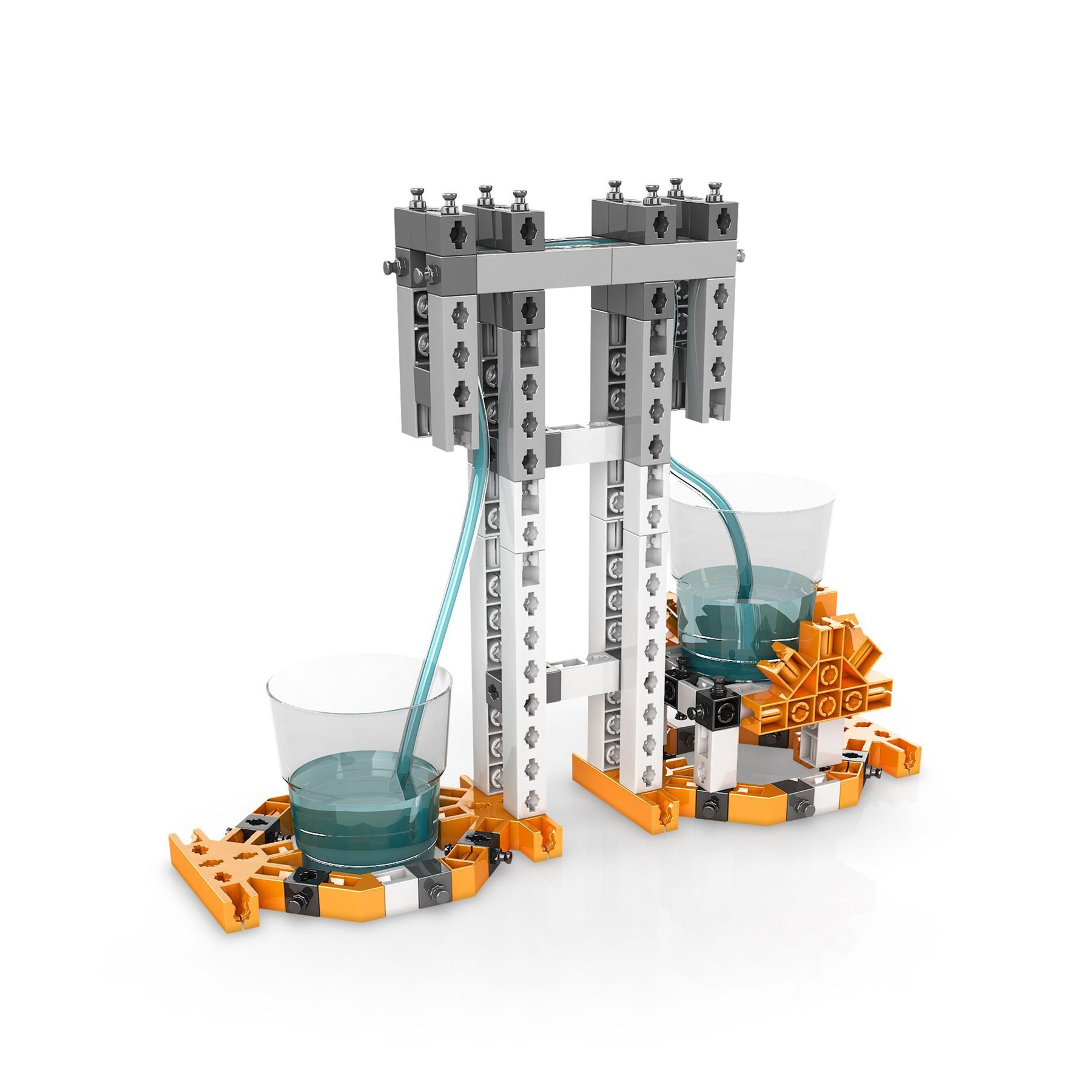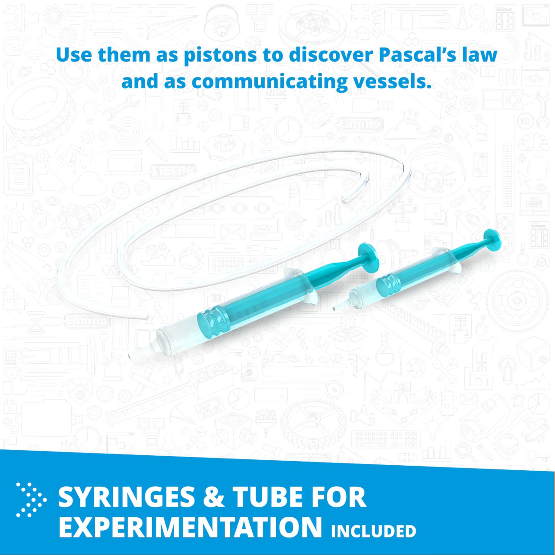 Една от най-важните области във физиката е изучаването на флуидите и техните основни принципи. Водата и въздухът са двата най-важни елемента за живота, като и двата са категоризирани като флуиди. Движението на въздуха е това, което определя температурата в нашите стаи. Тръбопроводите доставят вода до домовете ни. Промишлените и строителните машини използват хидравлика, за да вдигат лесно тежки предмети. Самолетите и корабите променят посоката си на движение, като използват съответно аеродинамиката и хидродинамиката. Чудили ли сте се някога защо предмети потъват във вода, а други плуват? Как тече кръвта в тялото ни? Как работят водните резервоари? С този комплект можете да построите 6 различни модела, включително лодка и подводница, както и различни експериментални установки, за да научите всичко за динамиката на флуидите! Включени са отпечатани инструкции за построяване на 4 модела, а още 2 модела са достъпни онлайн и чрез безплатното приложение kidCAD за смарт устройства. Комплектът включва: