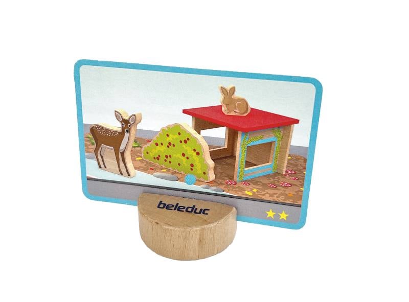 Тази увлекателна игра развива наблюдателността, пространственото мислене и езиковите умения. Децата трябва да открият къде са се скрили еленчето Рени и зайчето Хопс, да опишат местоположението им и да пресъздадат сцената с помощта на хижата и храста. Така те упражняват ориентацията в пространството и умението да дават точни словесни описания.Играта развива пространствена ориентация и комуникационни умения, стимулира концентрацията и вниманието към детайла.Комплектът включва 24 карти, 13 жетона с животни, 1 зарче и 3 фигурки.