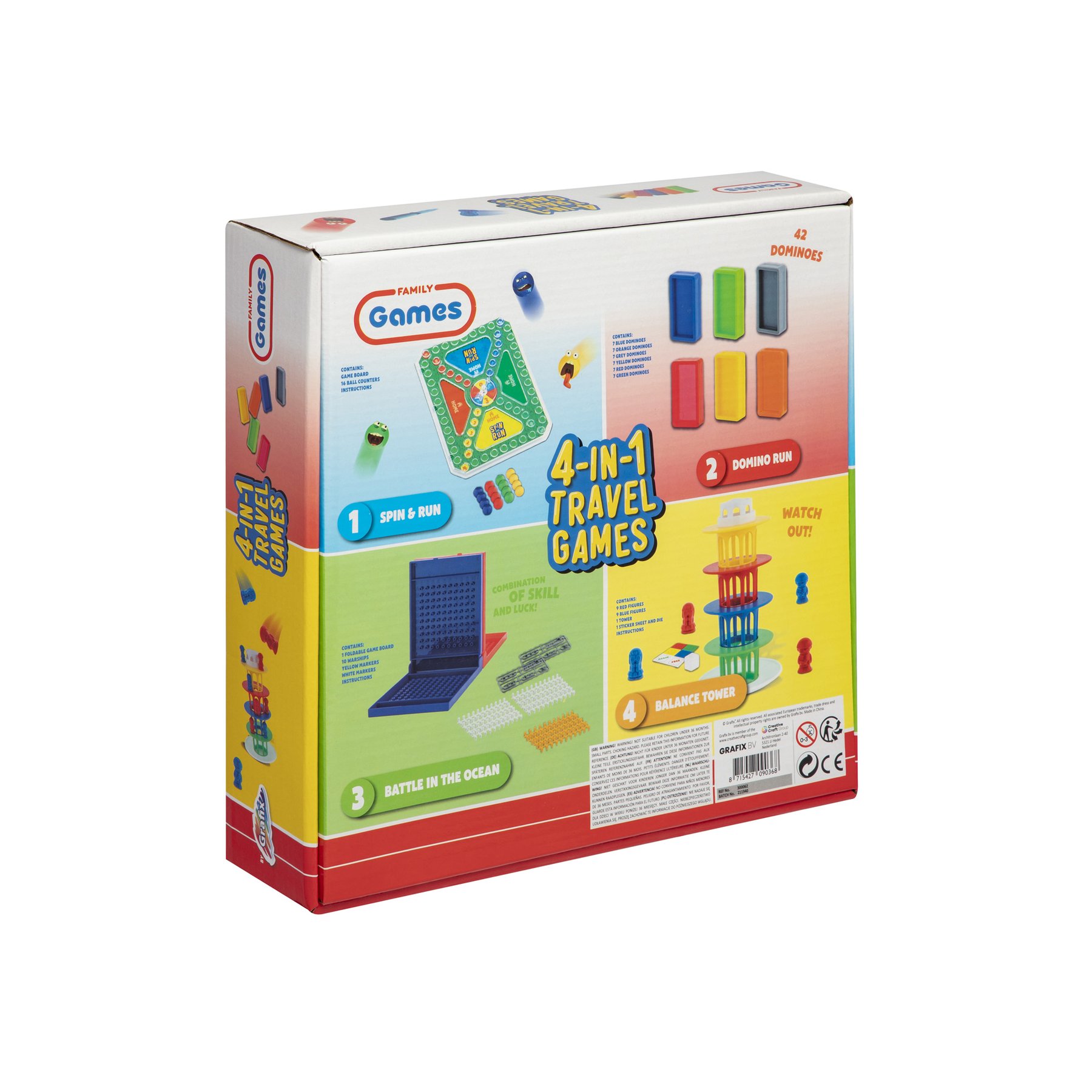 Забавлявайте се с цялото семейство с цели 4 игри за пътуване, където и да сте! В парка, на плажа или в планината - всяко място е подходящо за прекрасни семейни моменти! Игрите, които ще откриете в комплекта са: