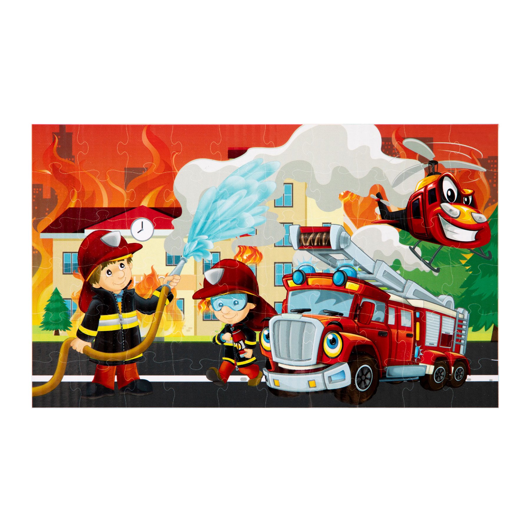 Пъзел "Пожарна" с 60 части и удобна кутия за пренос. Размери: 58 х 38.5 cm. Подходящо за деца над 4-годишна възраст.Може да видите декларацията за съответствие тук.