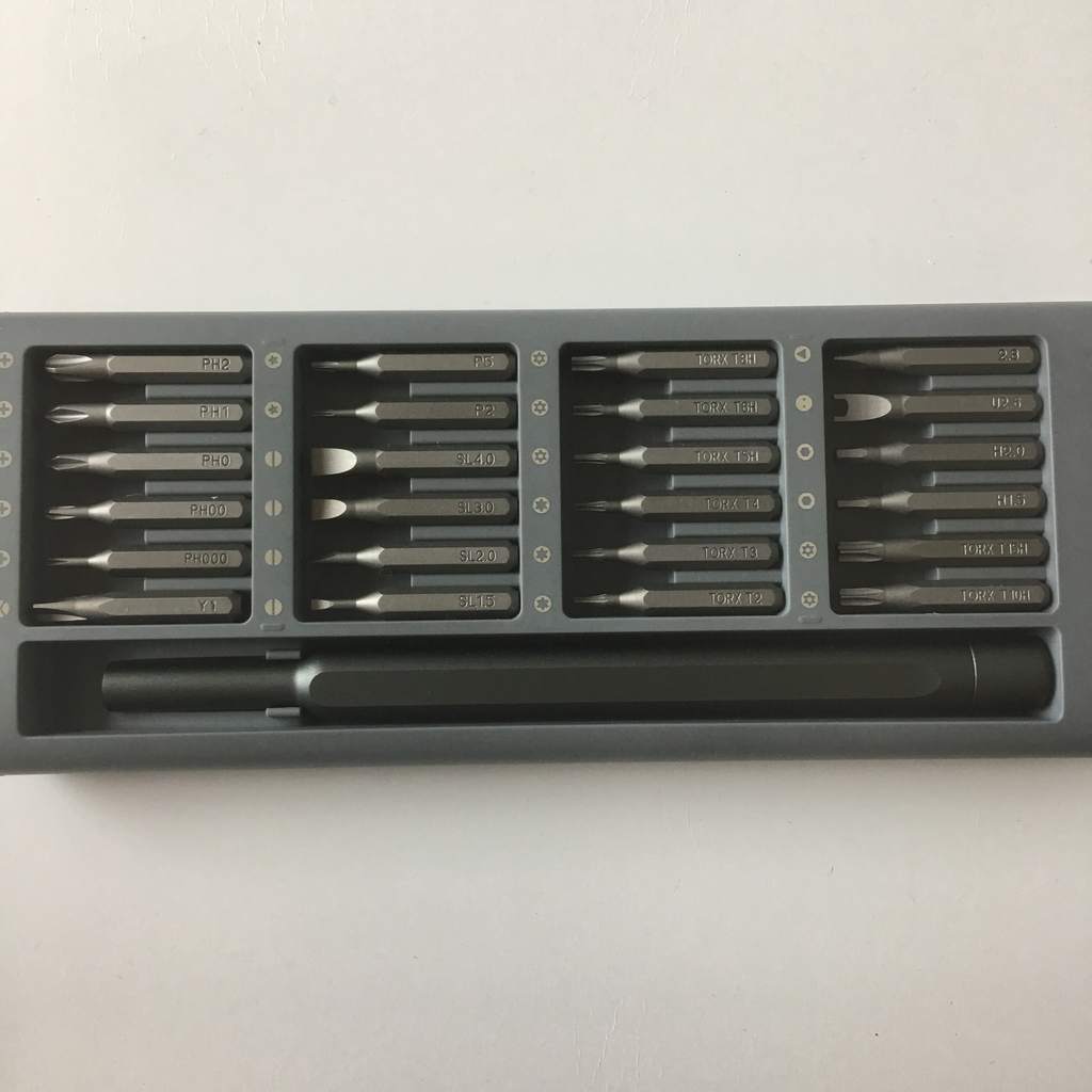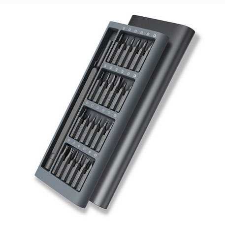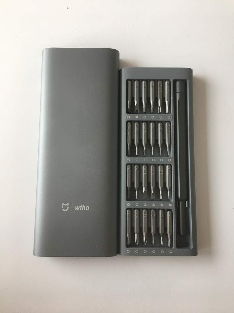 Удобен преносим комплект инструменти за професионалисти Mi x Wiha Precision Screwdriver за смарт устройства от 25 части. Инструментите са намират в малка компактна алуминиева кутия отваряема с пуш бутон. Всички накрайници са залепени към леглата си с магнит, по същия начин се прикрепят и към отвертката. Подходящо както за любители така и за професионалисти работещи в сервиз. За производството на инструмента е използвана стомана S2. Инструмента Mi x Wiha Precision Screwdriver можете да използвате за отремонтиране на смартфони, смарт часовници, камери, музикални плеяри и други.