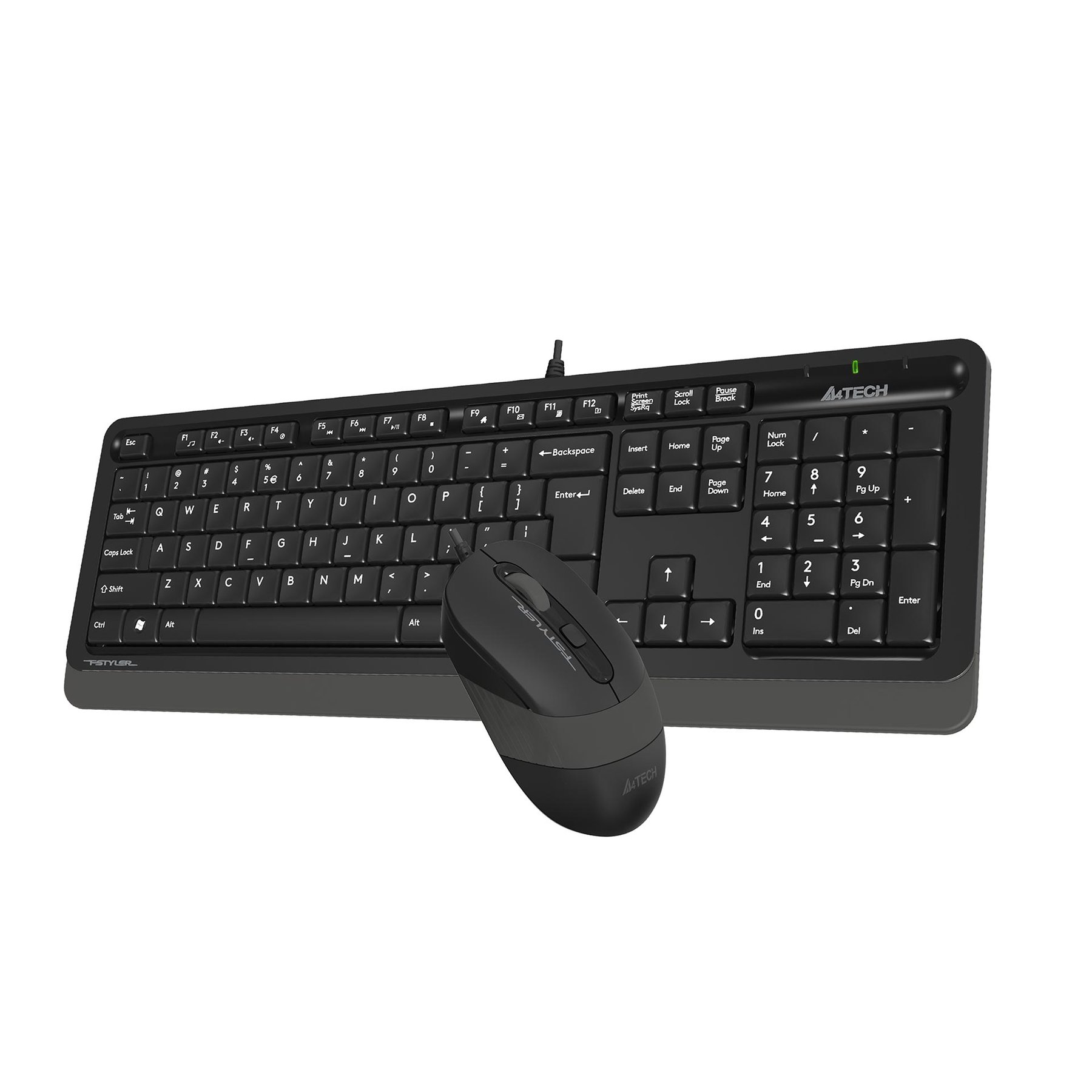 Комплект пълноразмерна клавиатура с цифров блок и оптична мишка, предназначени за дълготрайна и комфортна употреба у дома или в офиса. Клавиатура: