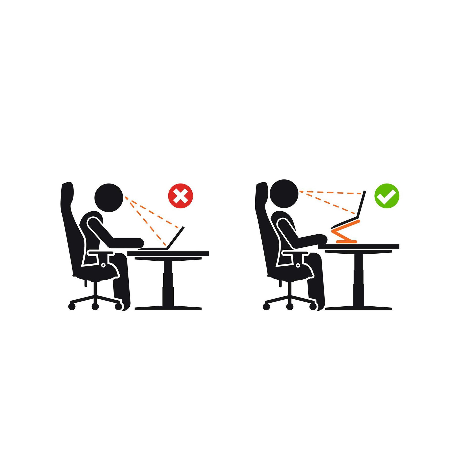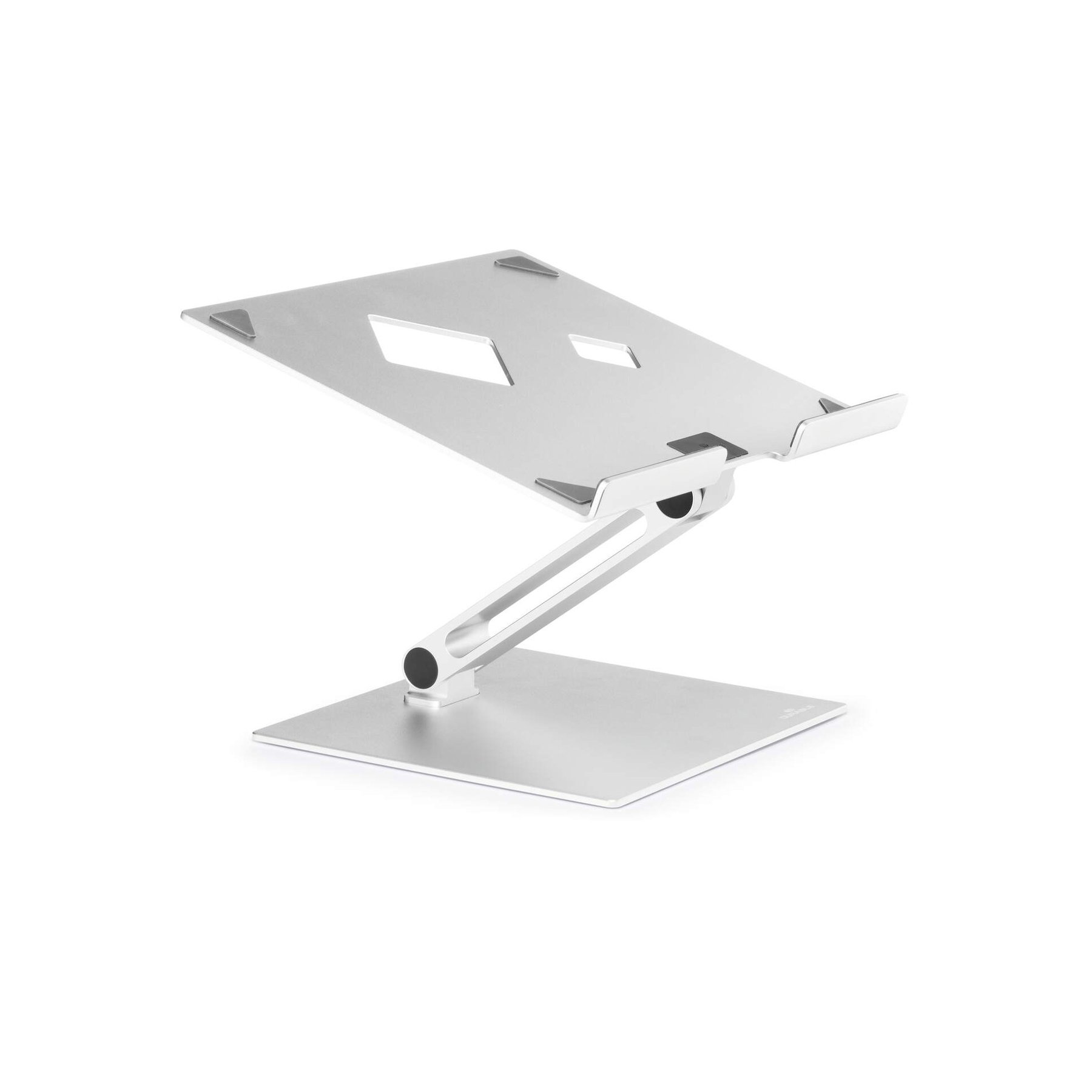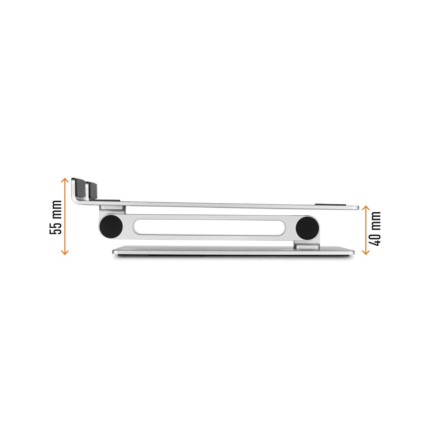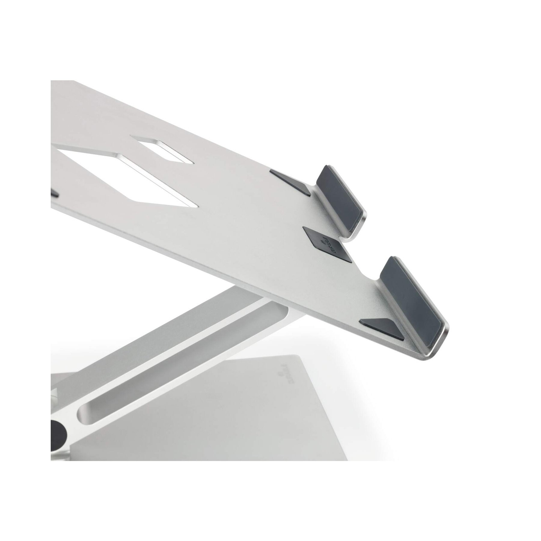 Универсална регулируема поставка за лаптопи и таблети с размери от 10'' до 17''. Улеснява ергономичната работа с гъвкавата си регулируема височина и ъгъл на наклон. Неплъзгащите се гумени повърхности предпазват устройството от надраскване Сгъваема и лесно преносима, спестяваща много място. Подобрено отвеждане на топлината, благодарение на въздушните отвори и алуминиевата плоча. Голямата вдлъбната дръжка улеснява отварянето и затварянето на лаптопа. Изработена от алуминий с дебелина 3.5 mm, за надеждна и дългосрочна употреба.