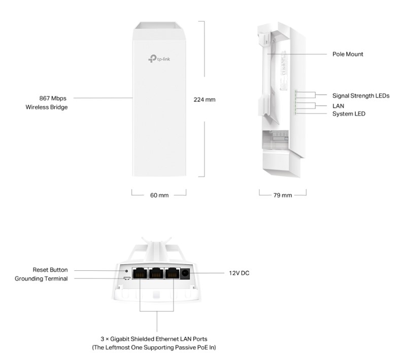 - Поддържа Passive PoE за гъвкаво внедряване (включен адаптер).