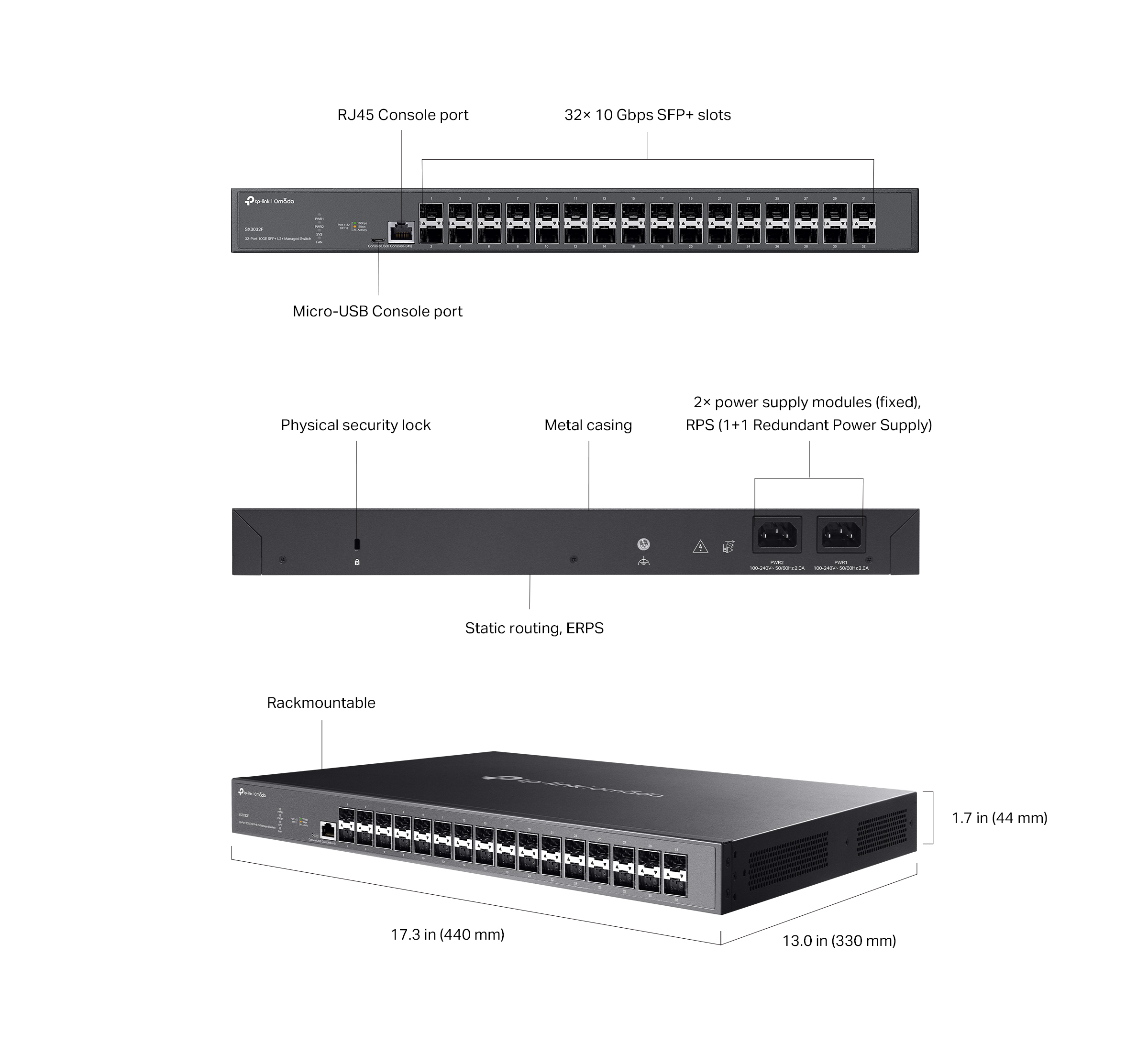 32-портов 10GE SFP+ L2+ управляем комутатор TP-Link Omada SX3032F