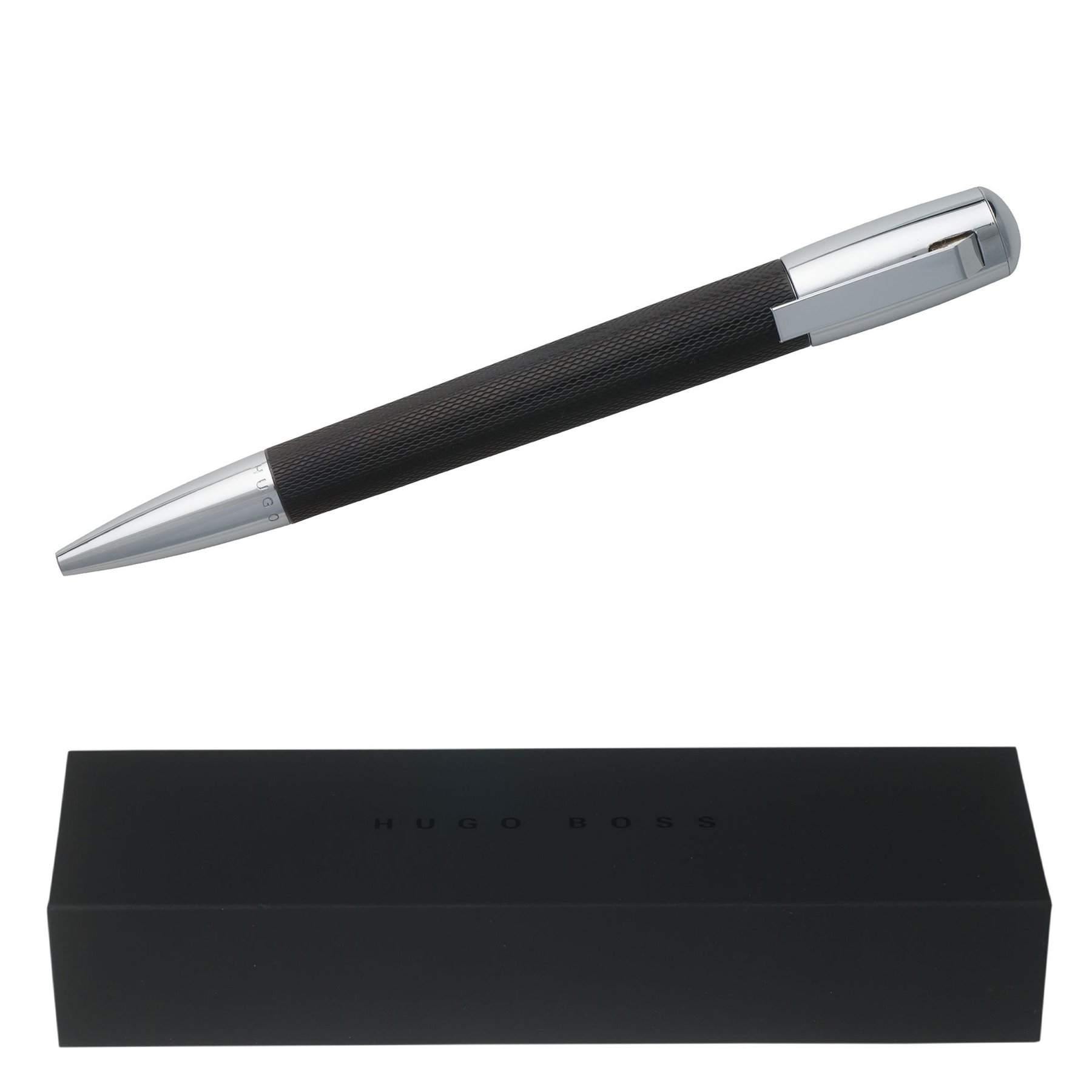 Линията Pure съчетава в себе си семплата елегантност, която би придала перфектния завършек на всяка бизнес среща или обикновен ден в офиса. Фината й текстура осигурява максимален комфорт при писане. Гравираното лого Hugo Boss добавя модерен и стилен дизайн на Вашето пишещо средство. Материал: месинг, лак. Размери: ø14, дължина: 141 mm. Тегло: 52 g. Цвят: черен. Цвят на мастилото: син. Тип на консуматива (пълнителя): Parker style. С включена стилна кутия.