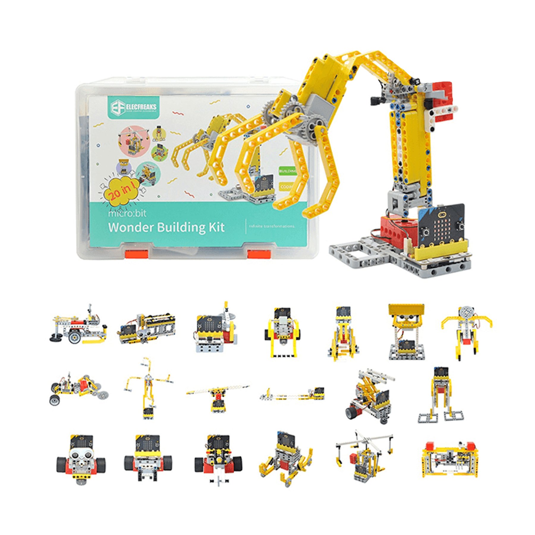 ELECFREAKS microbit 32 в 1 комплектът се фокусира върху разширяването на блоковете с 32 проекта, налични в WIKI, като ви дава повече възможности за създаване на повече проекти. Той е оборудван с различни електронни сензори като сензор за проследяване на линия, Sonarbit, сензор за ниво на водата и др., за да ви позволи да добавите повече предизвикателства и забавления към вашите проекти.