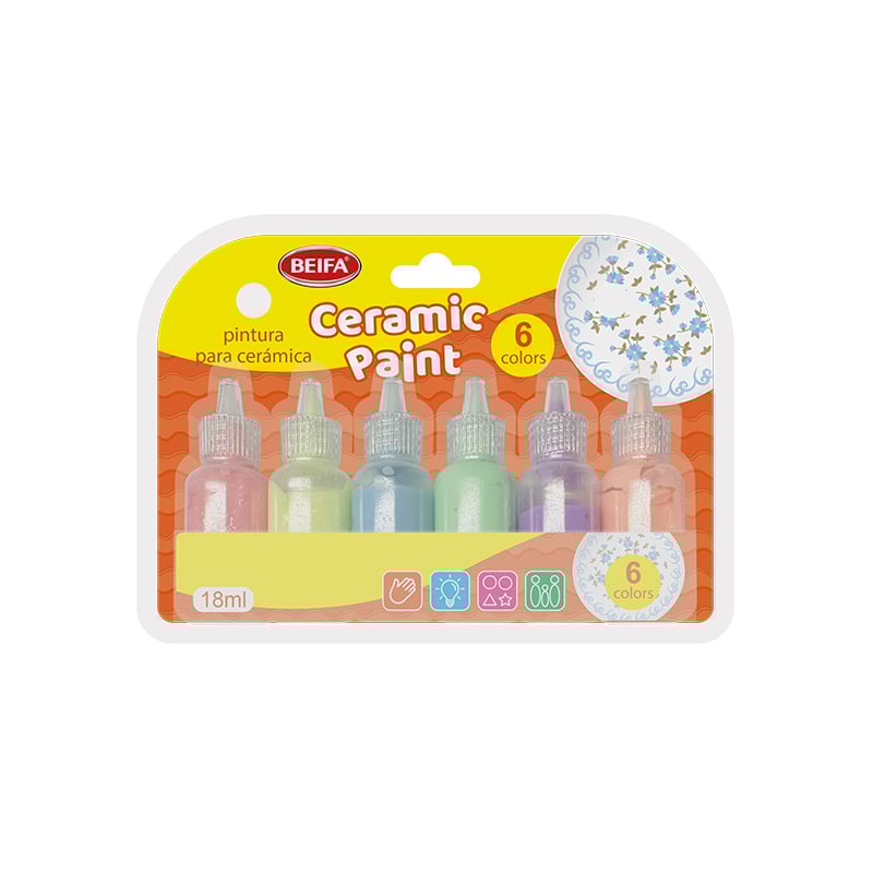 С боите за стъкло и керамика на Beifa ще вдъхнете нов живот на чаши, чинии, буркани, вази и други декоративни предмети. Подходящи са както за хоби проекти, така и за творчески занимания у дома или в училище.С тях можете да създадете уникални ръчно изработени декорации и персонализирани подаръци. Перфектен избор за творчески натури и любители на DIY проектите.Компактен комплект от 6 цвята – удобен за съхранение и пренасяне.Всяка бутилка е с вместимост от 18 ml.