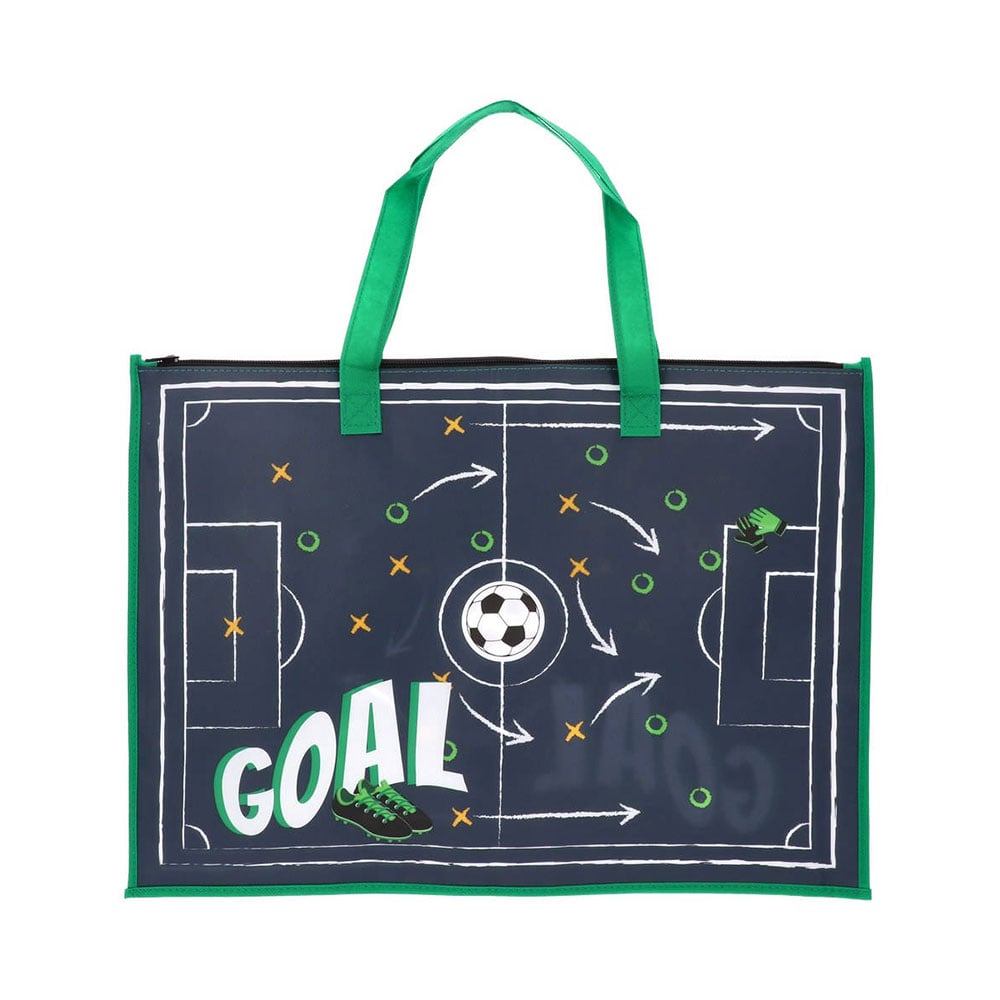 Чантата за рисунки с дръжки е практично решение за съхранение и пренасяне на учебни материали. Изработена от водоустойчив материал с пластмасово покритие, тя предпазва съдържанието от замърсяване и влага. Разполага с подсилени дръжки за удобно носене и цип за сигурно затваряне. Подходяща е за формат A3, като осигурява достатъчно място за рисунки, скицници и други учебни пособия. Лесна за почистване и издръжлива при ежедневна употреба. Размери: 33.5 х 47.5 х 1.5 cm.